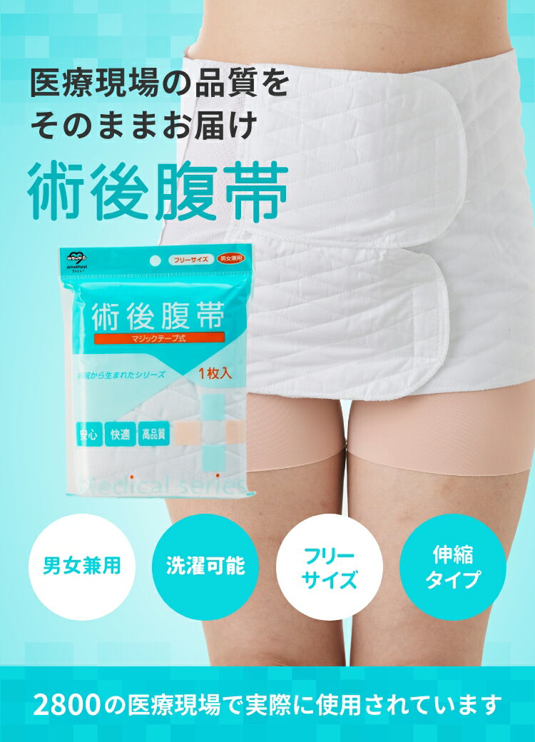 腹帯マジックタイプ 伸縮腹帯 メイン素材:綿100% マジックテープ・2本ベルト式 1枚入 アメジストの「病院から生まれたシリーズ」は、病院のニーズに基づき開発された高品質の製品を、一般の皆様にもご使用していただけるように企画した安心・快適・高品質な商品です。