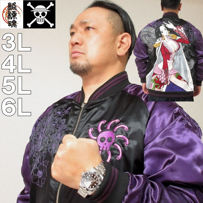 大きいサイズ メンズ 絡繰魂×ONE PIECE-ハンコック リバーシブル スカジャン(メーカー取寄)からくり 3L 4L 5L 6L