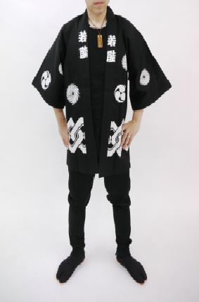 ◆平置き実寸【身巾】31cm【身丈】50cm ◆衿文字【小若】◆半纏・手拭・帯の3点セットです。