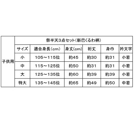お祭り はんてん はっぴ 子供用 半被 法被 【新巴くるわ柄 3点(法被・帯・手拭)セット 子供用小(1〜2才)】