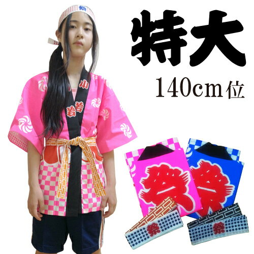はっぴ 子供用 お祭り半被 3点セット 特大 (10〜13才 身長140cm位 小学生 高学年 /身丈:約67cm/身幅:約48cm) 【G065】【自社在庫品A】