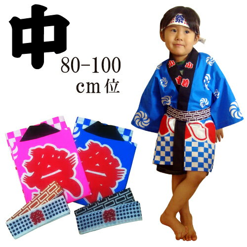 はっぴ 子供用 お祭り半被 3点セット 中 (3〜6歳/身長80〜100cm位/幼児〜幼稚園) 【G065】【自社在庫品A】