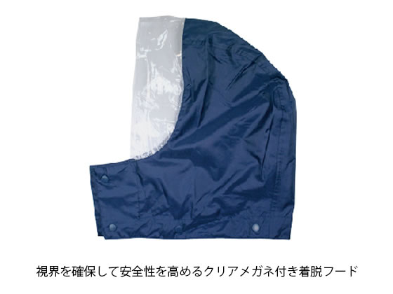 【仕様】素材:ポリエステル100%(PVCラミネート) ライナー ポリエステル100%(メッシュ) クリアメガネ付きの取り外し可能なフードは用途に合わせて使用可能。