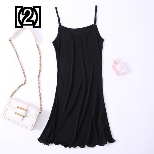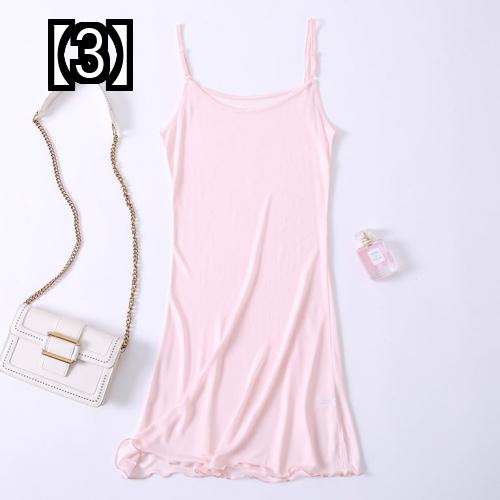 スリップ インナー ワンピース 透け ペチコート レディース スカート 通気性 肌着 下着 ルームウェア 大きいサイズ 夏 白 黒 ピンク 肩紐 調節可能
