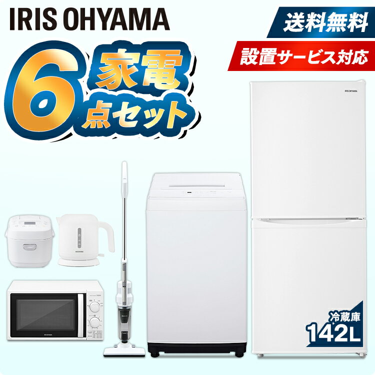 家電セット 6点セット アイリスオーヤマ 冷蔵庫 142L 洗濯機 5kg 電子レンジ 西日本 東日本 マイコン 炊飯器 掃除機 ケトル付冷蔵庫 一人暮らし 洗濯機 ひとり暮らし 家電セット 小型洗濯機 新品 新生活セット 単身 単身赴任 引っ越し